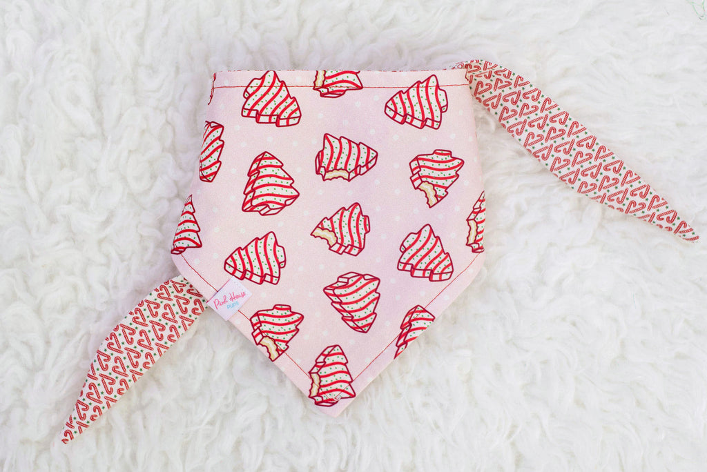 Classic Christmas, but make it super girly! Little Debbie tree cakes are back, but on baby pink background for the baby girl pups. Our Stella needs zero more pink Christmas bandanas, but guess what? There is room for one more.